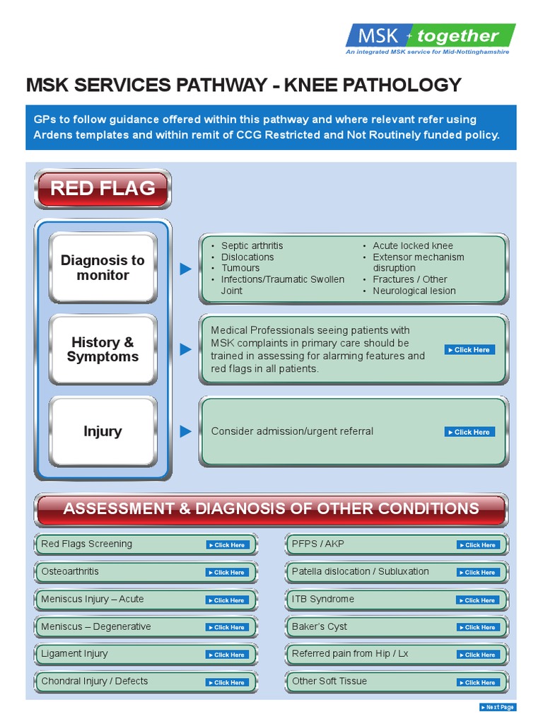 Red Flag MSK Services Pathway Knee Pathology PDF Knee
